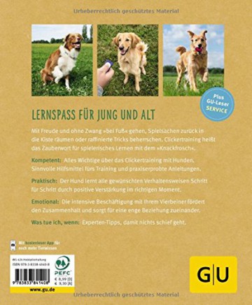 Also ran an das Erlernen dieser Zaubermethode, die Ihnen nicht nur bei der Erziehung Ihres Vierbeiners hilft, sondern auch beim Trainieren kleiner Kunststücke Erfolg verspricht. Die erfahrene Hundetrainerin Katharina Schlegl-Kofler gibt Ihnen in diesem GU Tierratgeber Hunde-Clickertraining eine genaue Anleitung mit praktischen Übungen fürs Clickern.