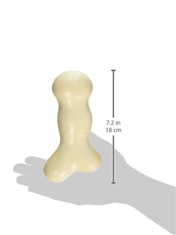 Form und Härte des Nylabone sorgen für saubere Zähne, ohne sie abzunutzen. Durch das Kauen auf dem Nylabone bilden sich alle möglichen Arten kleiner „Bürsten“ auf der Oberfläche des Kauknochens, aber der Knochen weicht nicht auf. Diese Bürstchen putzen den Schmutz von den Zähnen und massieren gleichzeitig das Zahnfleisch. Der Nylabone Knochen hat einen eher dezenten Geschmack. Für Menschen ist der Geschmack kaum wahrnehmbar und für Hunde so minimal ausgeprägt, dass sie beim Kauen nicht zu sabbern anfangen.