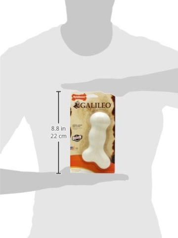 Der Kauknochen enthält keine toxischen Bestandteile. Wirkungsweise Kauprodukte aus Tierhaut sind oft weich und klebrig; natürliche Knochen reiben an den Zähnen, wodurch der Zahnschmelz beschädigt und unnötiger Verschleiß an den Zähnen verursacht wird. Form und Härte des Nylabone sorgen für saubere Zähne, ohne sie abzunutzen. Durch das Kauen auf dem Nylabone bilden sich alle möglichen Arten kleiner „Bürsten“ auf der Oberfläche des Kauknochens, aber der Knochen weicht nicht auf. Diese Bürstchen putzen den Schmutz von den Zähnen und massieren gleichzeitig das Zahnfleisch. Der Nylabone Knochen hat einen eher dezenten Geschmack. Für Menschen ist der Geschmack kaum wahrnehmbar und für Hunde so minimal ausgeprägt, dass sie beim Kauen nicht zu sabbern anfangen. Nylabone Galileo Kauknochen ist ein sehr langlebiges Produkt, er nutzt beim Kauen nur extrem langsam ab und hält deshalb sehr lange. Der Knochen verursacht keine Verschmutzungen und ist leicht zu reinigen.