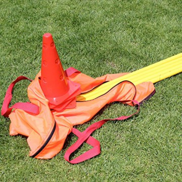 Die Kegel Hürden sind 30 cm hoch und haben an allen 4 Seiten 3 Löcher übereinander. In diese Löcher können Sie Querstangen mit Durchmesser 25 mm einstecken. So können Sie 3 verschiedene Hürden aufbauen, 10 cm, 18 cm, 26 cm. Unverzichtbar für jedes interessante Agility-Training!