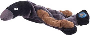 • Unser drittes Spielzeug von „Knuffelwuff“. Die aufgenähten Augen habe ich entfernt, um ein etwaiges Verschlucken zu verhindern. Trotz dieses „Handycaps“ ein gutes Spielzeug- robust im Einsatz im Wechsel mit den anderen, die alle Freude machen.