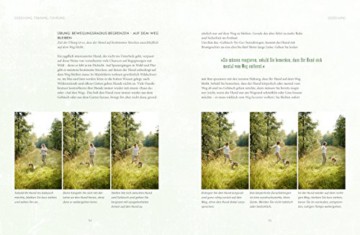 Die Autorinnen arbeiten ihrerseits mit einem 3-Säulen-Modell, bestehend aus Erziehung, Training und Führung. Hier werden zahlreiche hilfreiche und praxistaugliche Tipps und Empfehlungen gegeben und diese auch mittels Schritt-für-Schritt-Anleitungen und Bildern sehr gut und anschaulich erklärt. Obwohl mein Hund im Freilauf mittlerweile doch schon recht verlässlich ist, habe ich noch einige Dinge entdeckt, die mir bereits bei ersten Versuchen in der Praxis schon spürbar weitergeholfen haben.