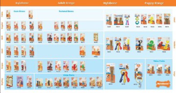 Nylabone ist chemisch beständig und kann mit dem Körper des Hundes keine Verbindung eingehen. Der Kauknochen enthält keine toxischen Bestandteile. Wirkungsweise Kauprodukte aus Tierhaut sind oft weich und klebrig; natürliche Knochen reiben an den Zähnen, wodurch der Zahnschmelz beschädigt und unnötiger Verschleiß an den Zähnen verursacht wird. Form und Härte des Nylabone sorgen für saubere Zähne, ohne sie abzunutzen. Durch das Kauen auf dem Nylabone bilden sich alle möglichen Arten kleiner „Bürsten“ auf der Oberfläche des Kauknochens. Aber der Knochen weicht nicht auf. Diese Bürstchen putzen den Schmutz von den Zähnen und massieren gleichzeitig das Zahnfleisch.