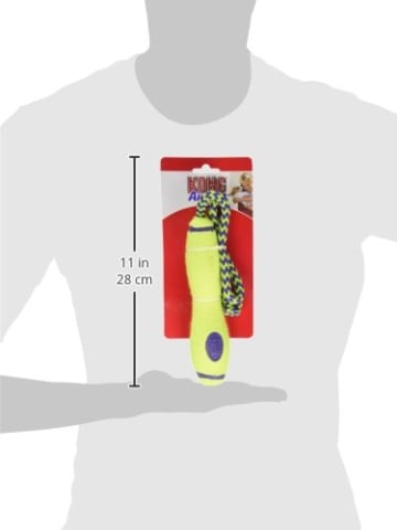 • Mein Hund (Mops-Beagle-Mix) liebt diese Air Kong Spielzeuge. Dieses hier ist klasse, weil man damit Zerrspiele spielen kann (sehr robust!) UND es lässt sich ganz toll weit werfen! Hält jetzt ca. 3 Monate, also gern wieder, hat sich gelohnt!!