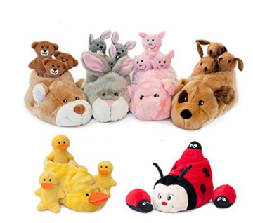 Das Interaktive puzzle Pantoffel Nest ist ein Hundespielzeug mit 3 kleinen quietschenden Themenspielzeuge innen. ZippyPaws Pantoffel Nester sind super entzückend und beschäftigt Ihr Haustier für Stunden! Jedes Set wird mit einem niedlichen Slipper „Nest“ mit 3 passenden Themen geliefert.